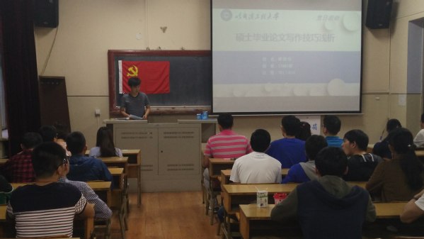 随后,我院优秀应届毕业生代表柳国印就硕士论文写作技巧为现场同学进行了专题讲座,详细介绍了硕士论文写作的六个环环相联的步骤,从论文的选题、框架设计到对材料的组织和论证,给现场党员启发很大,为支部成员在今后的毕业论文写作方面打下了基础。毕业生代表范亚博紧随其后,为支部党员就求职与应聘技巧分享了自己的经验。范亚博认为什么样的工作才是好工作,其实这个问题永远没有答案,但他相信,世无艰难,何出人杰,希望各位同学在选择职业方向时能坚守自己的梦想,用最真实的自我闯出属于自己的一片天空。