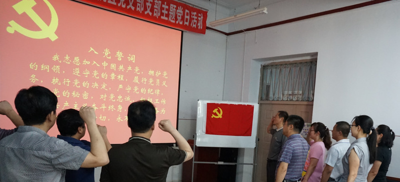 第一部分:在活动现场悬挂党旗,为所有参会党员佩戴党徽,唱国歌。由学院分党委书记李修志领誓,所有党员面对党旗重温入党誓词,重温入党宣誓时的庄严承诺和坚定决心,牢记共产党员的政治责任和历史使命,不断保持共产党员的先进性,以更加饱满的热情投身到工作中,切实发挥共产党员的先锋模范作用。