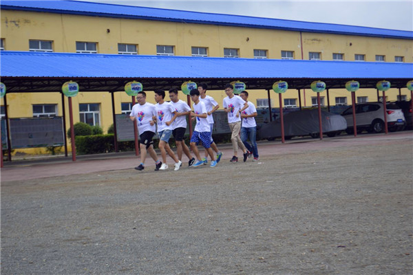 7月8日上午7时整,航建学院三下乡彩虹服务队于七棵树镇中心学校操场开展晨跑训练,全体彩虹服务队成员参与训练。