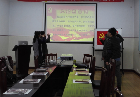 第一部分:重温入党誓词。活动现场悬挂党旗,所有参会党员佩戴党徽,由党支部书记邹高万领誓,所有党员面对党旗重温入党誓词。重温入党誓词,重温当年的决心和信念,对比我们今天的认识和行动,始终铭记党的誓言,让我们充满理想,自觉奉献,激励我们不断进取,切实发挥共产党员的先锋模范作用。