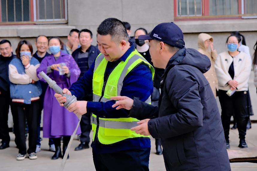 安全撤离后,学院领导、各部门教职工和学生在11号楼南门一侧区域参加灭火器使用培训并亲手实践,学校安全保卫处叶远康老师为大家示范如何正确使用灭火器、掌握扑灭初期火灾的方法。