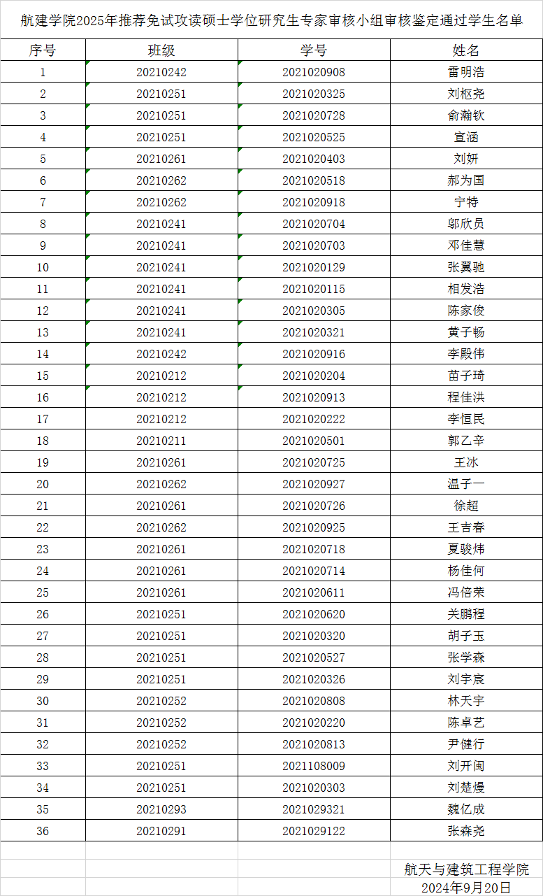 航建学院2025年推荐免试攻读硕士学位研究生专家审核小组审核鉴定通过学生名单