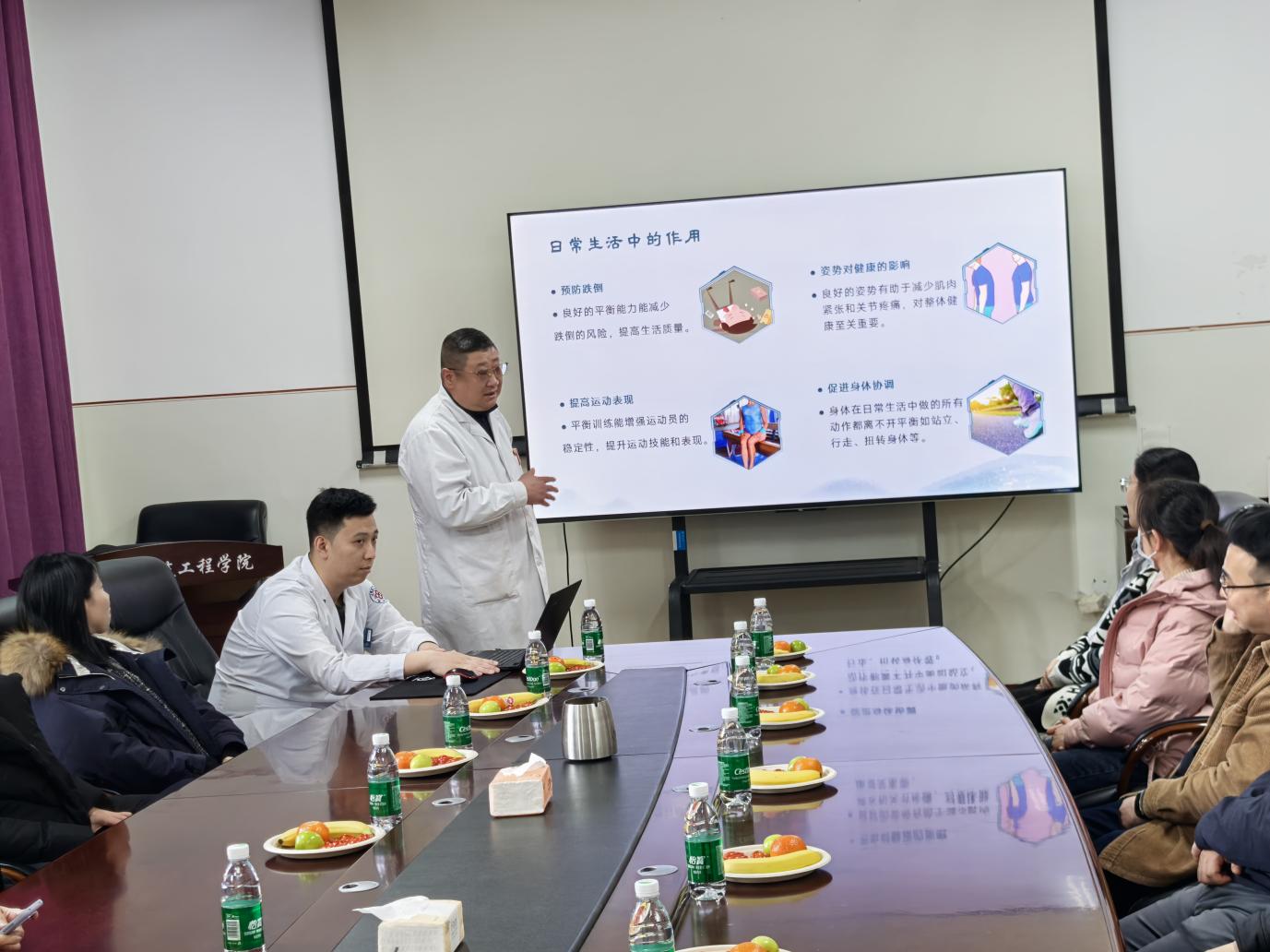 活动伊始,校医院中医科包舰医生,从人体气血、经络平衡的角度分析颈肩问题,产生原因、外在表象以及可能引发全身性的健康隐患,为在座教工科普了日常生活中需要注意的诸多事项。