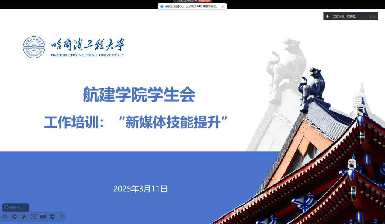 学生会于2025年3月11日面向全体部门开展“新媒体技能提升”系列线上推送活动,讲座内容涵盖模板化知识推送、视觉设计、网络宣传设计、运营策略等内容。所有部门踊跃参加,与会成员认真学习,提高了写作能力和表达能力,利于其在以后的工作中提高人际交往能力和工作能力。