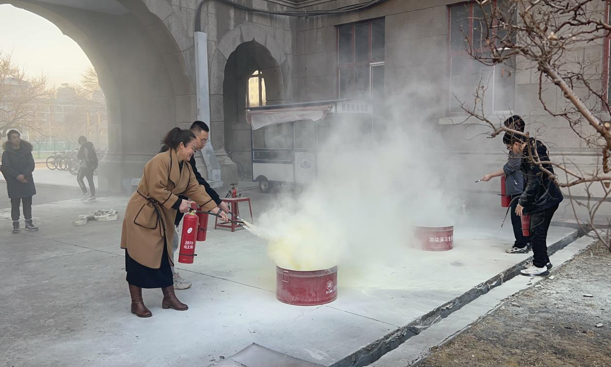 实操环节中,南岗区消防大队李鹏飞现场演示“提握瓶身、拔除保险、对准火源、按压手柄”四步灭火法,点燃油盆模拟初期火情,并指导师生分组实操。从初次操作时的紧张到熟练扑灭明火,参与师生切实掌握了扑灭初期火灾的关键技能。